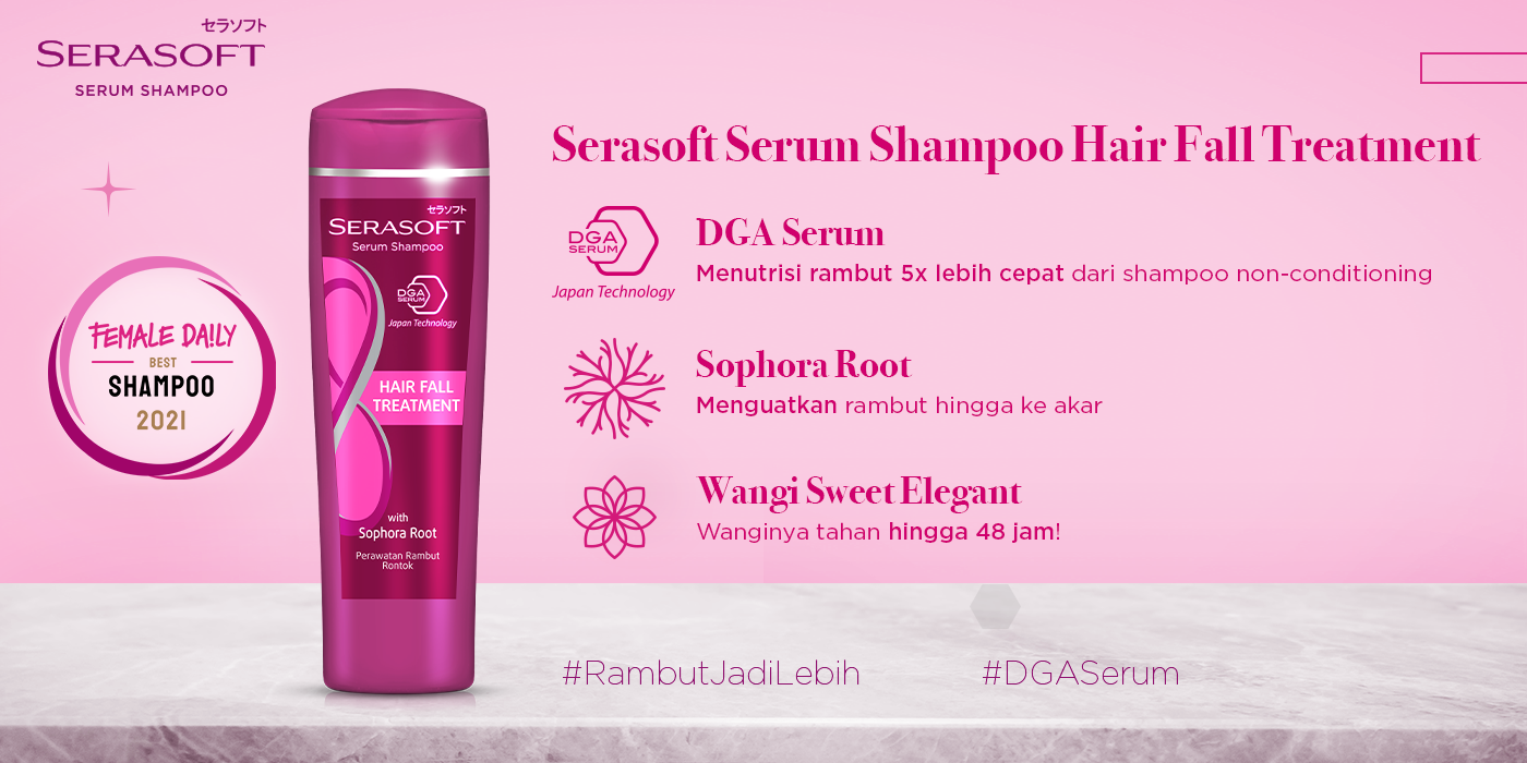 Manfaat Sophora Root dipadukan dengan DGA serum berteknologi Jepang dapat kamu rasakan pada Serasoft Hair Fall Treatment yang ampuh membuat akar rambut lebih kuat dan sehat. Kini, saatnya menikmati rambut nurut bebas rontok, sehingga kamu lebih berani jalani hari!